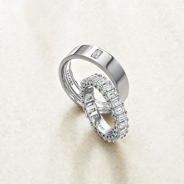 Each wedding band crafted by our designers and artisans is more than jewelry—it’s a symbol of two souls forging a lifetime together. Visit one of our stores and discover a breathtaking collection of stackable wedding bands. From trending styles by premier designers—Fire & Ice, A. JAFFE, Tacori—to uniquely crafted in-house favorites, each piece promises sparkle and sophistication.