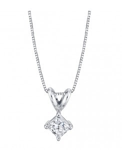 This Princess Cut Diamond Solitaire Pendant with 14k white gold Venetian chain features a prong-set diamond pendant with glistening facets reminiscent of a glacier's facades.