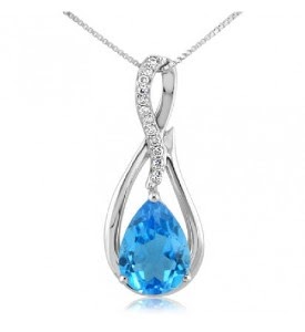 This 14k Swirl Drop Pendant features an aqua blue topaz gemstone that exhibits remarkable radiance and clarity. As the birthstone of November, this necklace is the ideal gift for one born in or around autumn.